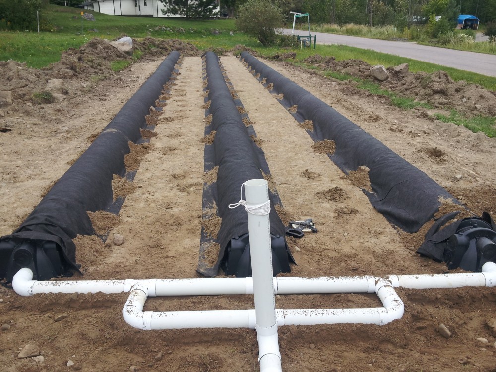 The Leach field – Once the solids settle in the tank, the liquid drains off to the leach field which is a network of perforated pipes laid in gravel filled trenches on top of a soil bed. The wastewater is filtered as it flows down through the gravel and it is further treated as it flows down through the microbes in the soil before it eventually gets back to the groundwater.